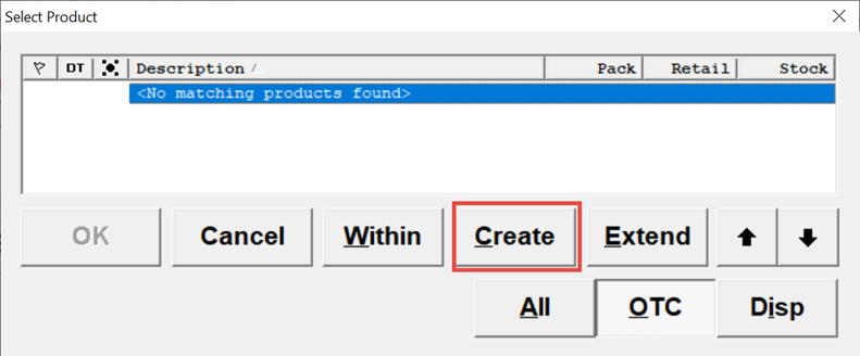 Press the appropriate button for your product depending on whether you are adding a dispensary or OTC product, if it is in both categories press ALL.Then press Create.