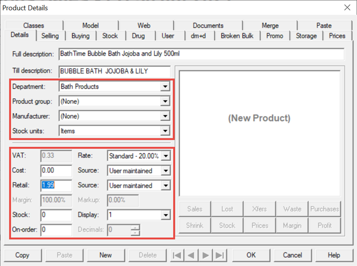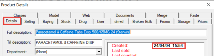 First, in the Details tab enter the full details of the product in the Full Description field, this should include information such as size, flavour, form etc. If necessary, the Till description can be shorter and less specific, as in the example below.