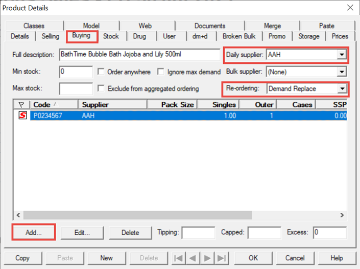 orders through Analyst EPoS add the Daily supplier and Re-ordering method.